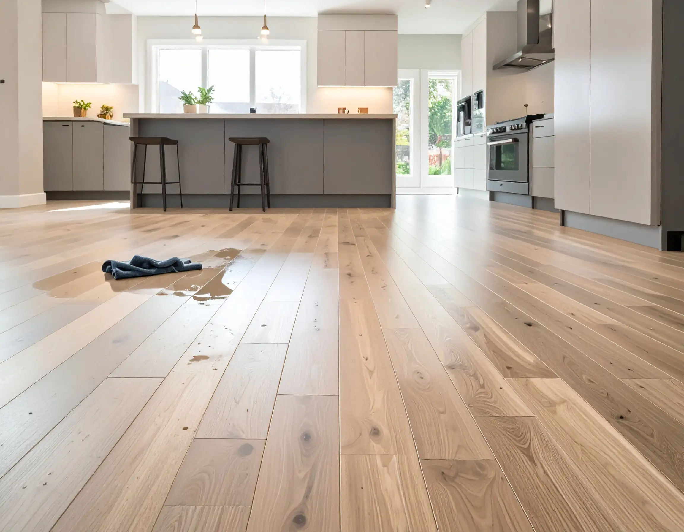 For laminate flooring, the key is to avoid excessive water. Use a damp mop (well wrung out) or a microfiber mop with a laminate-friendly cleaner. Never flood a laminate floor with water or leave puddles standing, as water can seep into seams and damage the core. Many manufacturers recommend using a dedicated laminate floor cleaner or just a bit of vinegar and water solution sprayed lightly on the mop. No wet mopping and definitely no steam mops on laminate (steam can penetrate and cause swelling). Also, do not wax or polish laminate - it’s designed to stay at the sheen it comes with. In fact, adding wax can create a dull film or make it slippery. If you protect laminate from moisture and clean it gently, it will maintain its look without much effort. For spills, wipe them up promptly with a cloth. Sticky messes can be lightly damp-mopped.