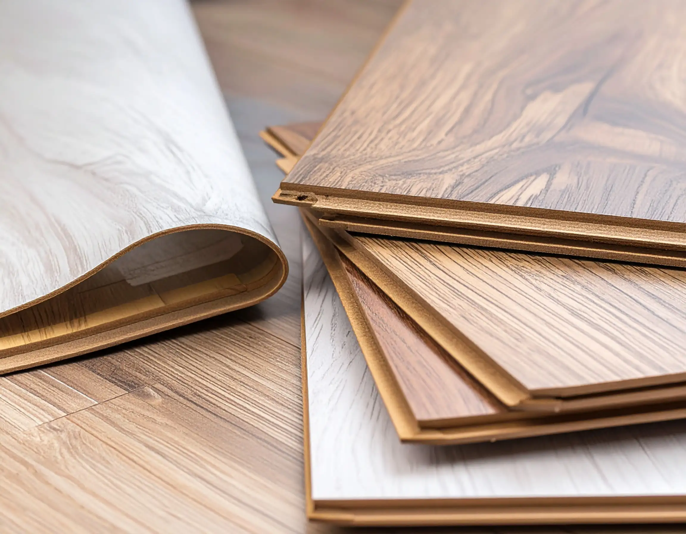 Laminate flooring is constructed of layered materials fused together. Its core is typically high-density fiberboard (HDF) made from compressed wood fibers, bonded with resins, with a photographic image layer on top, all sealed under a clear protective wear layer. In other words, laminate is a wood-based product at its core (hence the name laminate wood flooring). By contrast, vinyl flooring (especially luxury vinyl plank or tile, known as LVP/LVT) is made entirely of polyvinyl chloride (PVC) and other synthetic layers. Vinyl planks usually have a base layer, a printed design layer, and a thick PVC core, topped with a transparent wear layer for protection. There is no wood content in standard vinyl flooring - it’s all plastic, which gives vinyl some unique properties discussed below.
