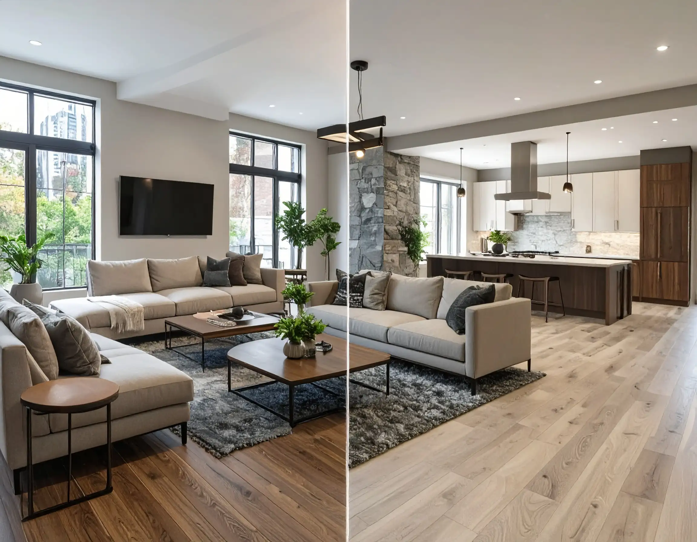 Resale value: Neither laminate nor vinyl will add huge real estate value like genuine hardwood might, but having new, good-quality flooring of either type can be a selling point. According to home improvement experts, quality laminate and quality vinyl contribute similarly to home value - buyers generally accept both as modern, easy-care flooring. Laminate used to have a bit of an edge in perception because older vinyl was seen as cheap. However, with the rise of attractive luxury vinyl, many buyers (especially younger ones aware of vinyl plank benefits) are very happy to see vinyl plank floors in a home. Toronto’s condo market, for example, frequently uses vinyl plank in renovations because of its water-resistant practicality. As long as the floor looks good and isn’t a bargain-basement flimsy product, buyers won’t be turned off. One exception: very cheap vinyl (like old thin sheet vinyl or low-quality peel-and-stick) might drag down a home’s appeal slightly, just as a really worn-out laminate would. But if we compare mid/high-grade laminate vs. mid/high-grade LVP, their resale impact is about equal - they are considered durable, attractive flooring but not luxury upgrades. Neither will match the prestige of real hardwood or stone in buyers’ eyes, but they also won’t usually nix a sale. In fact, a well-done vinyl or laminate floor is often seen as a plus because the buyer doesn’t have to immediately replace it.